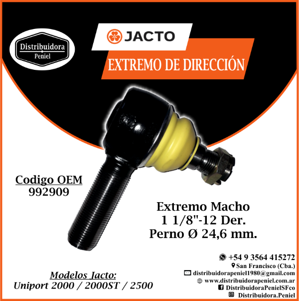 EXTREMO DE DIRECCION ROSCA MACHO 1 1/8”-12 UNF DER.