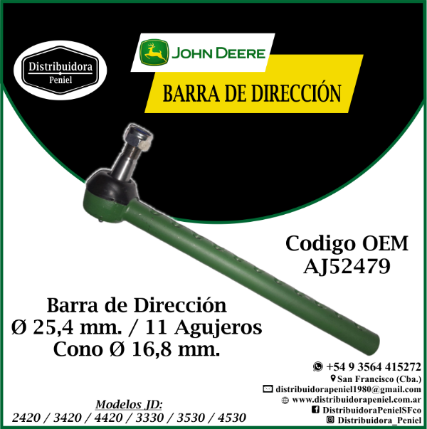 BARRA DE DIRECCION Ø 25.4 MM. CON 11 AGUJEROS