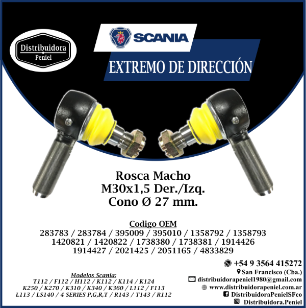 KIT EXTREMO DE DIRECCIÓN ROSCA MACHO M30x1,5 DER. E IZQ.